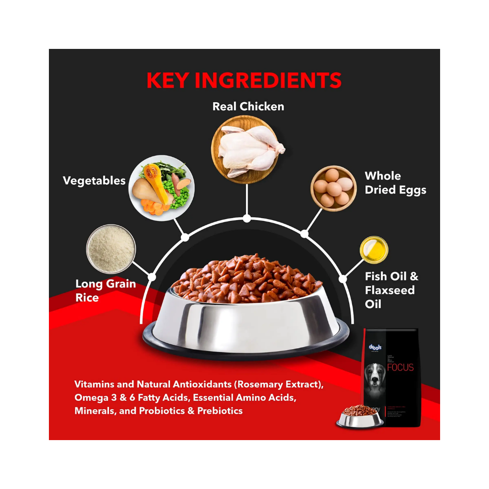 Drools Focus Puppy Dog Food is a carefully crafted food designed to provide the essential building blocks for the healthy growth and development of puppies. This premium dog food formula offers a balanced blend of high-quality proteins, vitamins, and minerals, perfectly tailored to meet the unique dietary needs of growing pups. Real meat, often sourced from chicken or lamb, serves as a primary protein source, promoting strong muscles and overall vitality. With added DHA, it supports cognitive development and healthy vision in young dogs. Additionally, this food fosters healthy skin, a shiny coat, and robust immunity. Formulated for puppies, Drools Focus Puppy Dog Food delivers both taste and nutrition, ensuring that your furry friend enjoys a wholesome start to a vibrant, active life.