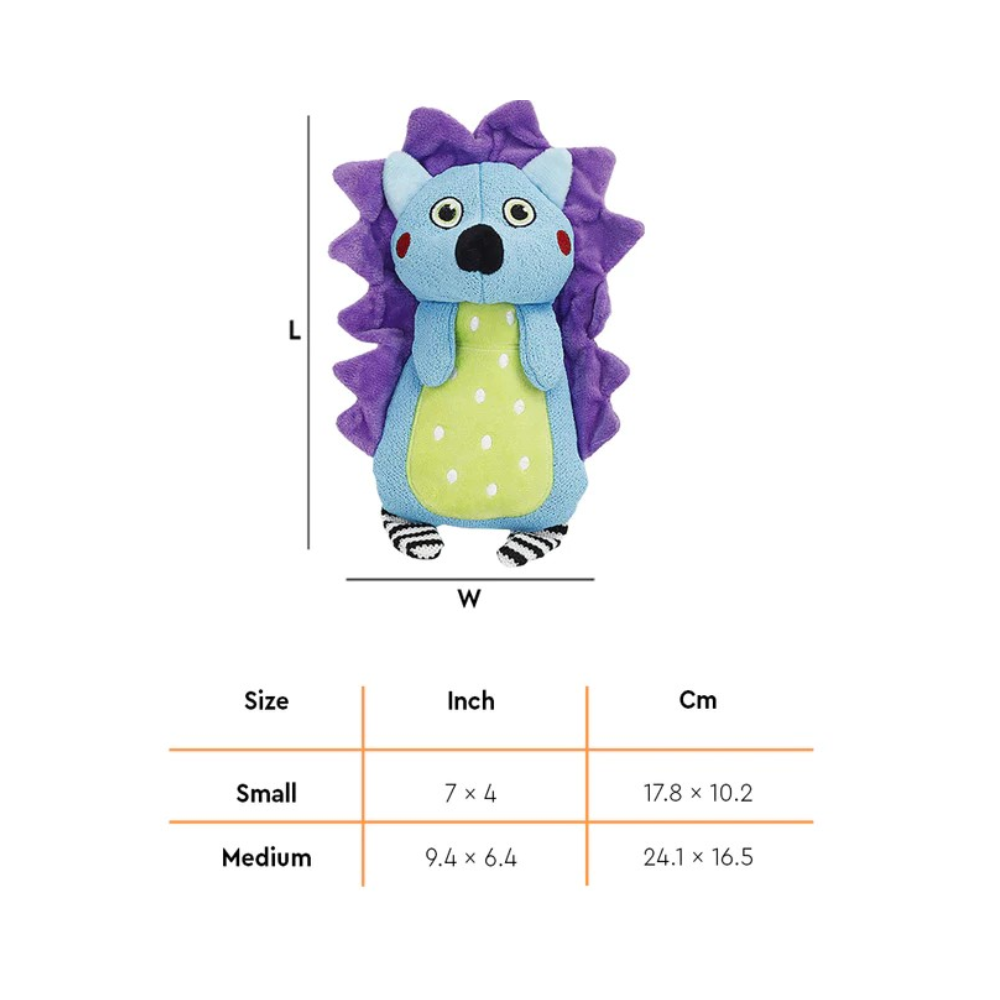 KONG Whoopz Hedgehog’s irresistibly spongy texture and long shape entice natural shaking instincts while rewarding natural chewing instincts. Two squeaker tones add to the engagement while a reinforced material helps extend playtime. The soft body is ideal for snuggling and indoor fetching fun.