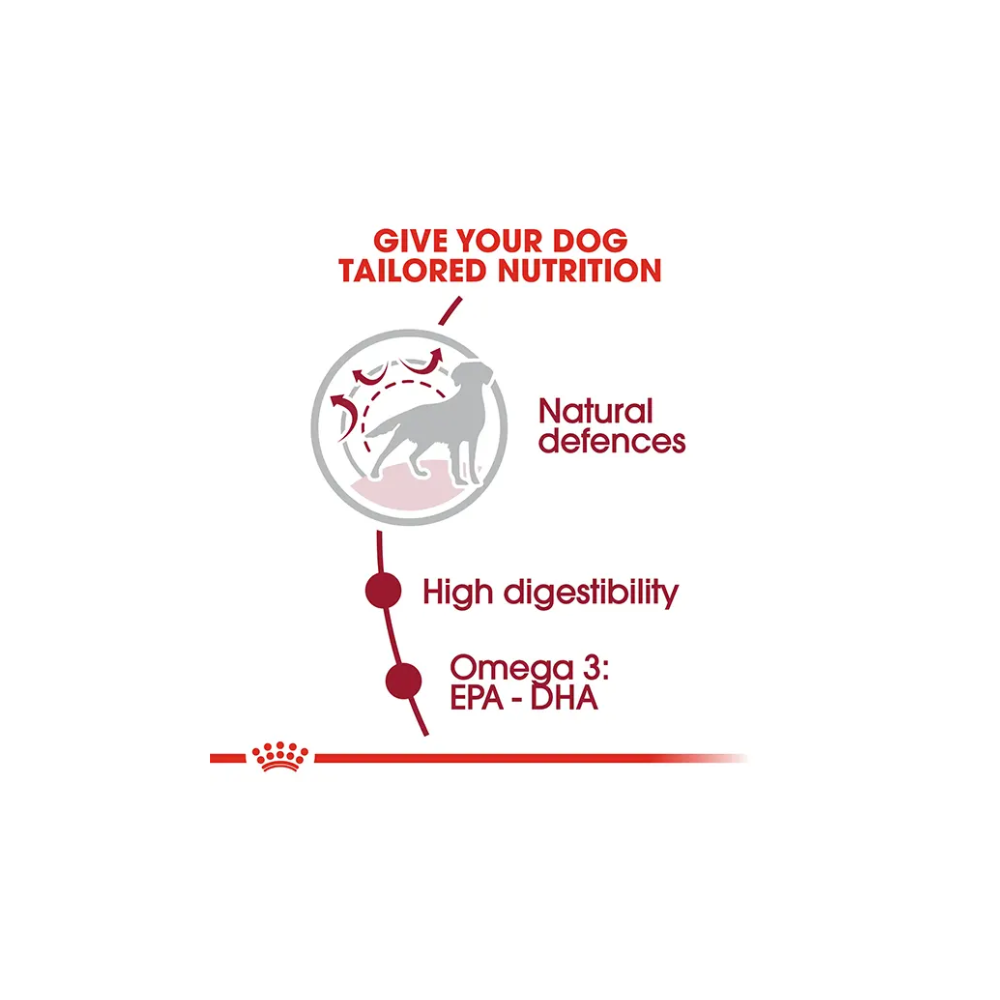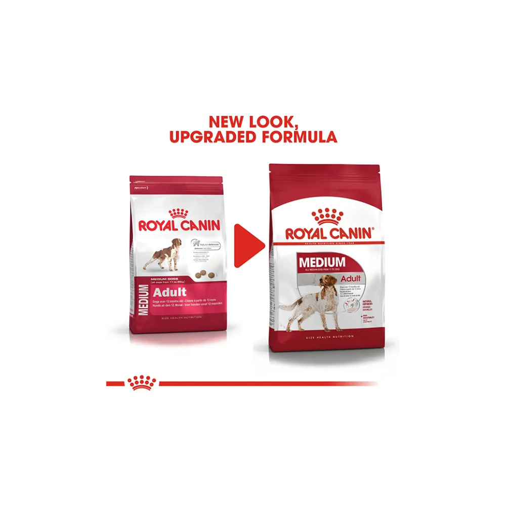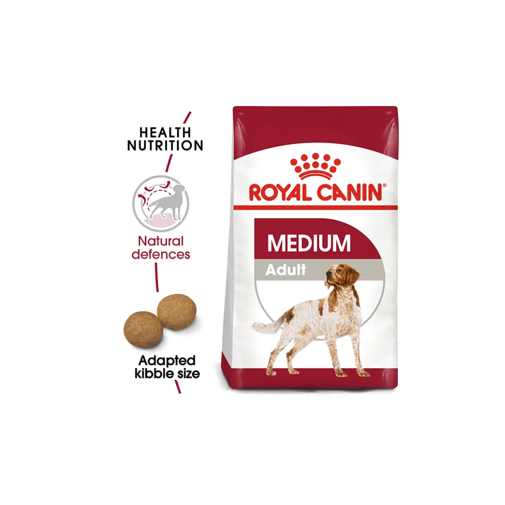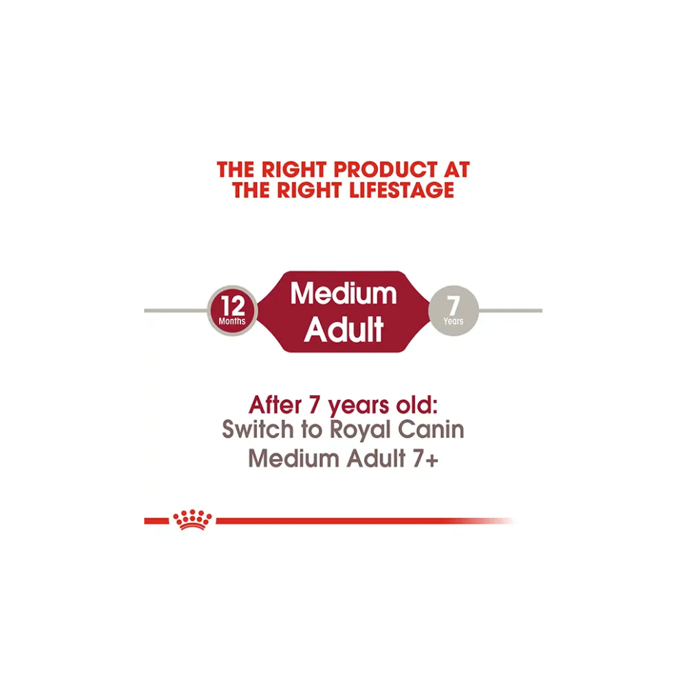 At 12 months, your Medium sized dog has now become an adult in terms of its physical growth. Good nutrition during this life stage is still as essential as it was when your dog was growing. Ensuring that your dog’s diet provides the right nutrients in the right levels is key to supporting and maintaining good health. ROYAL CANIN Medium Adult is specially formulated with the nutritional needs of your medium-sized adult dog in mind and is suitable for dogs aged 1-7 years that weigh between 11kg-25kg. ROYAL CANIN Medium Adult contains an exclusive antioxidant complex, as well as nutrients like manno-oligo-saccharides, to help support your dog’s natural defences, allowing it to maintain a healthy lifestyle. Thanks to an exclusive formula which includes very high-quality protein, ROYAL CANIN Medium Adult also helps to support optimal digestibility, this allows your dog to effectively absorb nutrients. What more, the balanced supply of dietary fibre further supports healthy digestibility for your dog. ROYAL CANIN Medium Adult is also enriched with omega-3 fatty acids, like EPA and DHA, to help maintain your dog’s healthy skin and coat condition.