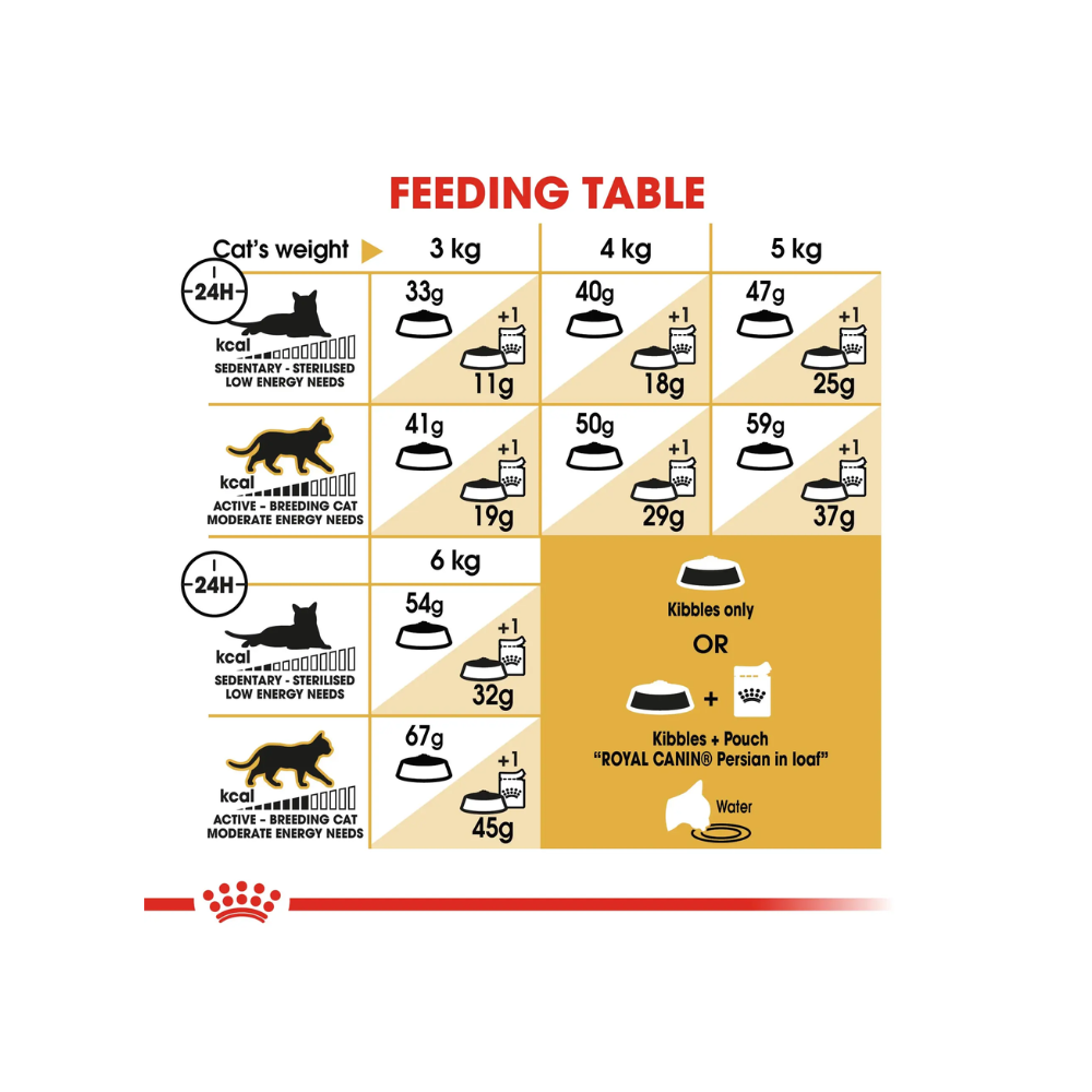 Royal Canin Persian Adult Cat Food is a complete food for grown-up Persian Cats, which helps in elevating their overall health and wellbeing. As you know, Persian cats are one of the most popular cat breeds across the world. Their highly affectionate nature and their love for cuddling make them great family pets. To keep them healthy and happy, a diet having adequate amounts of essential nutrients is required. Royal Canin Persian Cat Food Adult does exactly that. The food is in the form of almond-shaped kibble with an optimal contact surface area making it easier for Persian Cats to pick up and chew. To maintain the dense, beautiful coat of these breeds, the diet is enriched with Omega 3 and Omega 6 which thoroughly nourishes their skin. The dietary fibres in the food tremendously reduce the formation of hairball in cats. Highly digestible protein maintains a balanced flora for assisting gentle and healthy digestion. Royal Canin Persian Adult Cat Food has FOS and MOS prebiotics along with natural antioxidants that keep a healthy intestinal tract and a strong immune system in the cats.