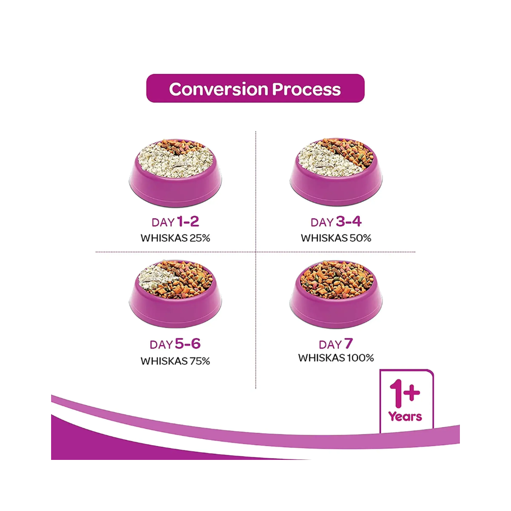 Whiskas Dry Cat Food Tuna Flavor is a highly delectable cat food that provides the felines with all important nutrients. The ingredients of this diet are easy to digest for assisting a higher nutrient absorption in the felines. A balanced composition of nutrients ensures that your cats maintain a healthy body weight and also prevents the risk of obesity and diabetes. Tuna Fish provides your cats with enough protein content for building strong muscles and also for supporting a faster muscle recovery. Whiskas Dry Cat Food Tuna Flavor consists of natural fibres that prevent the formation of hairballs, which ensures excellent digestive health in the cats.